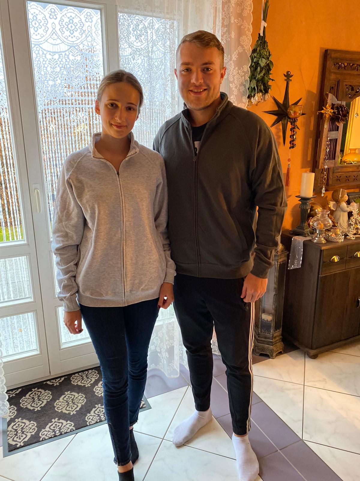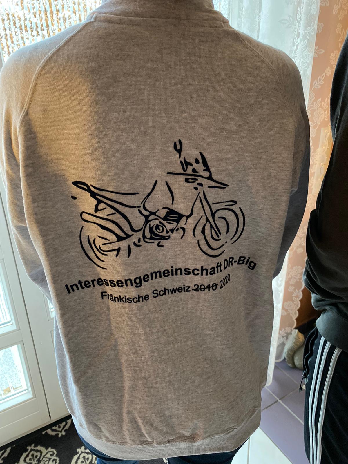 Jacke hellgrau, schwarzes Motiv. Fruit of the Loom Qualität.